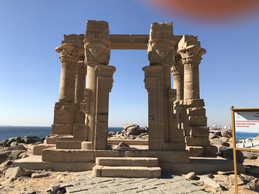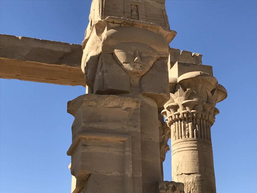 The Chapel of Qartasa dates from the Roman period. This is all that is left, but the columns have capitals with the head of the goddess Hathor and plants.
