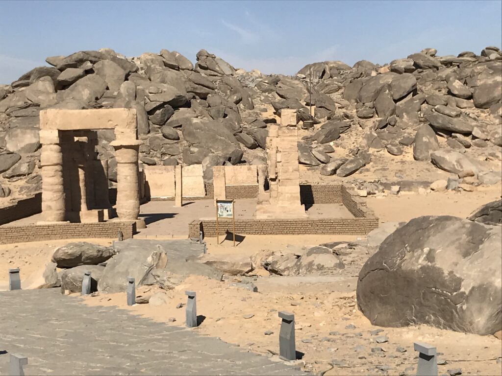 After exploring the Kalabasha Temple, we also explored several smaller ruins around it. They included the Qertasy Chapel of Hathour (the cow goddess)—1,900 years old; the Gerf Hussain Temple (Ramses II also called the House of Ptah)—3,150 years old; stones of the pre-dynastic periods are about 7,000 years old; The Chapel of Dodwan about 3,000 years old; Beit El-Wali Temple “Ramses 2” (3,250 years old). Below are more pictures from these sites surrounding the New Kalabasha Temple.