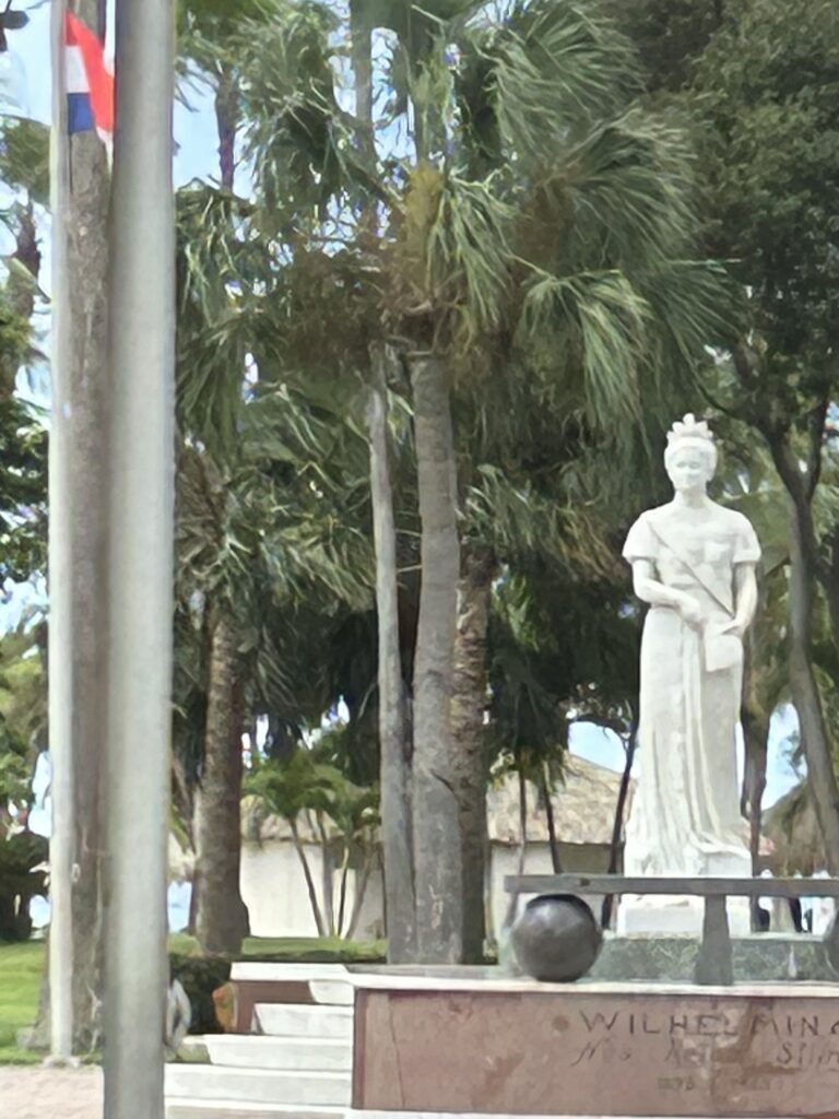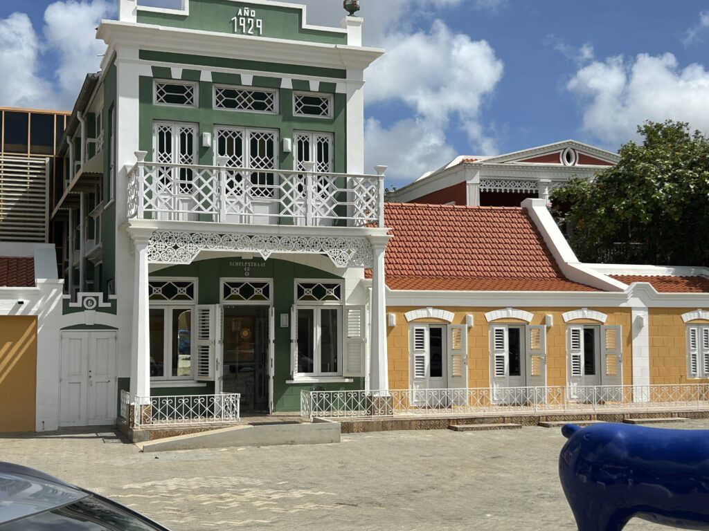 I started by hopping on the Oranjestad trolley that goes from the Cruise port to the downtown. It makes six stops along the way. The stops include the House of Parliament, National Archaeological Museum, Fort Zoutman, the Protestant Church, and the pedestrian mall at the end. This gave me an overview of some of the important sites close to the port.