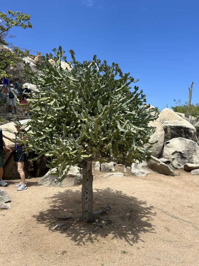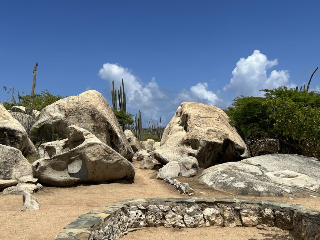 From Hooiberg, we traveled to the Casibari Rock Formations, also called the Cribari Boulders. The massive tonalite boulders create a unique landscape in Aruba’s generally flat terrain. We stopped to explore the boulders and climb up them for a great view of the island. The boulders are formed from large diorite and tonalite boulders, weighing several tons.