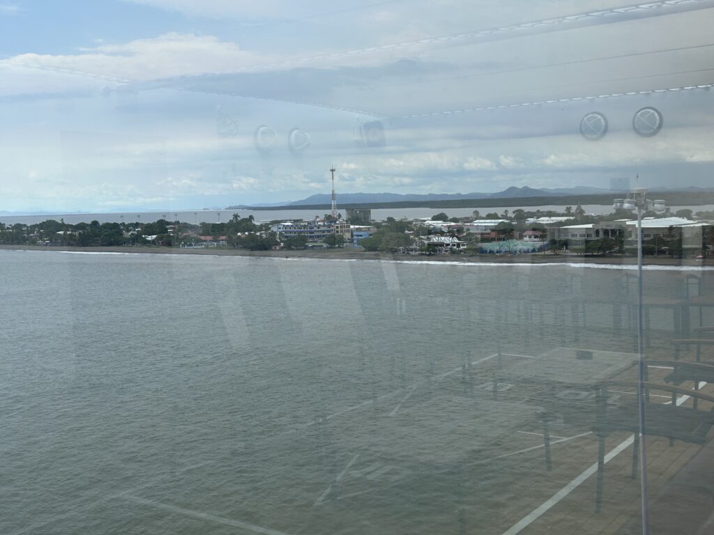 Today was a busy morning. After breakfast was Chairobics and Trivia. Between them I went to the lecture on “Theodore Roosevelt, the Panama Canal” given by Thomas Duryea. He gave a history starting with Balboa who imagined a route through the isthmus to transfer silver from the Pacific coast to the Caribbean without having to go around Cape Horn. The French made strides but as we know it was Roosevelt who got it done. One of the main problems was the initial effort to create a sea level passage rather than a lock/lake passage with was finally accepted. Overcoming disease, poor working and living conditions, and crumbling soil were major hurtles.