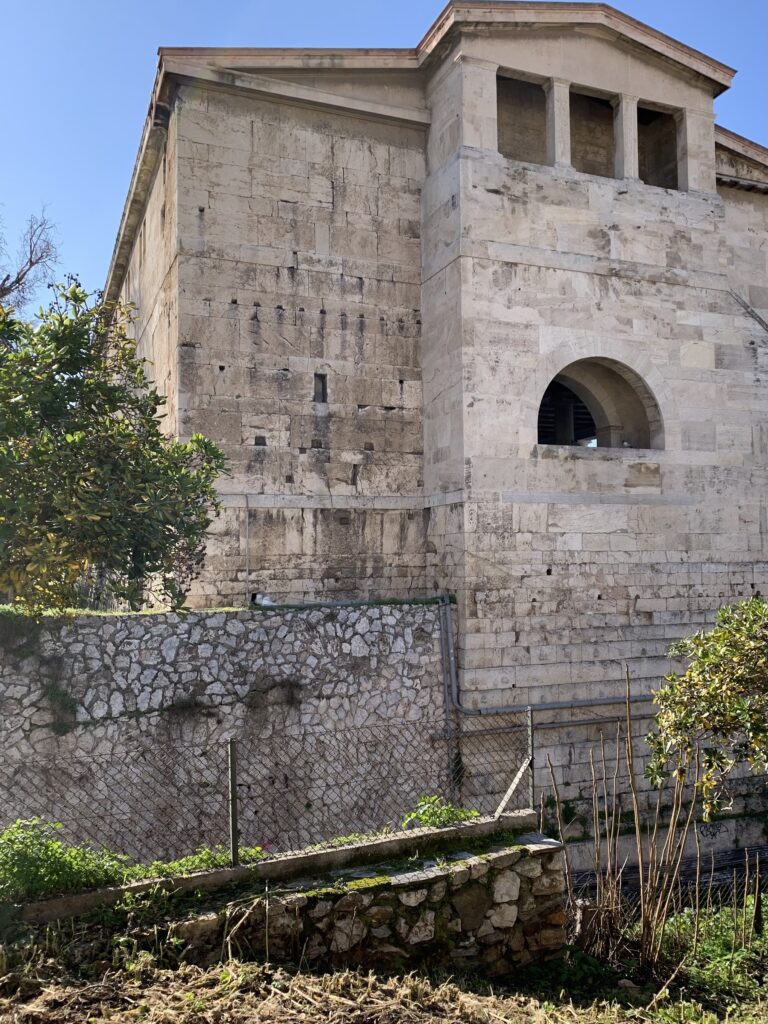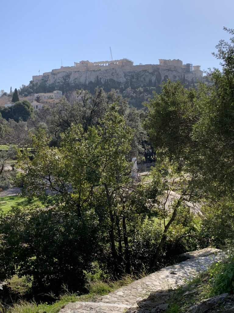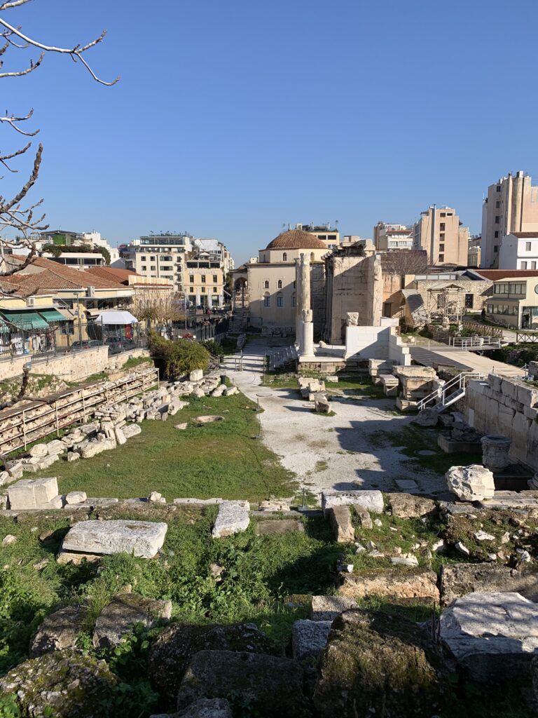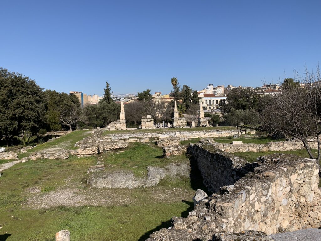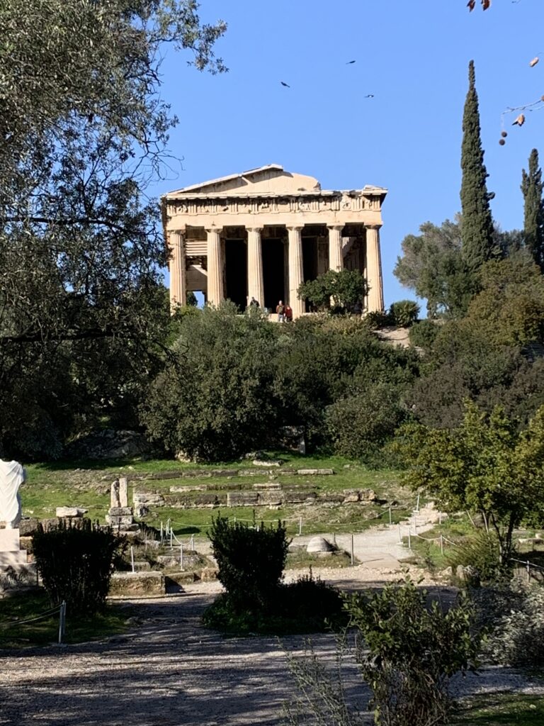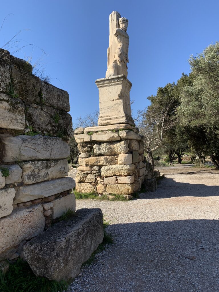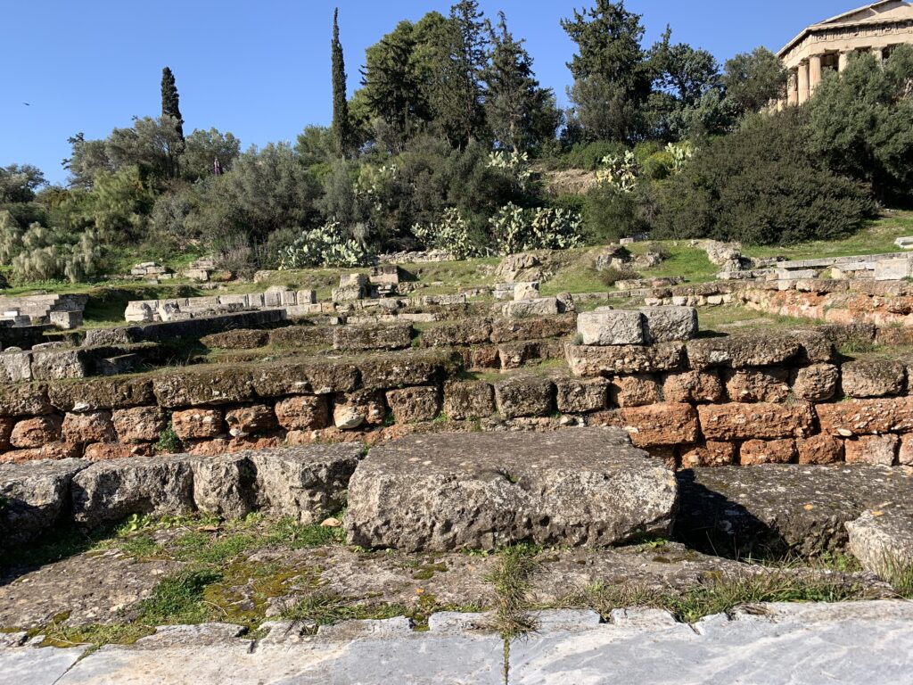 In front of the Temple we encountered the Ruins of a Metroon, an ancient sanctuary to the Mother of the Gods, Cybele. It dates back to the 4th century BCE. The temple served as both a place of worship and a state archive. The Athenians believed that law and civic duty were under divine protection, showing the connection between law and religion. The temple was made of limestone and marble.