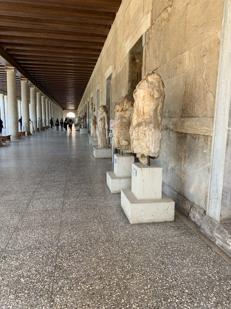 Our next stop was at the Agora Museum. It houses artifacts from the Agora, such as pottery, coins, and tools, showcasing daily life in ancient Athens. It is situated in the Stoa of Attalos, a reconstructed ancient building on the site. The Agora was an important gathering place for Athenians to debate the various laws and future of the city, to worship the various gods, and to shop in the open-air market.