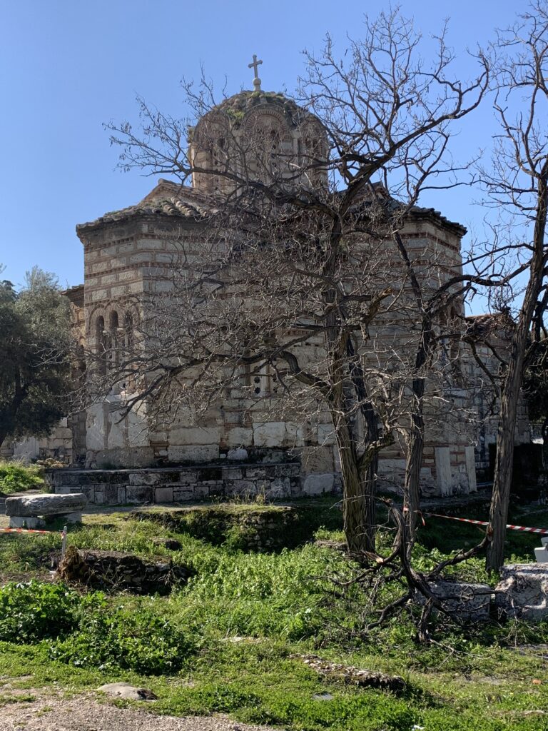 Close to the Museum is the Church of the Holy Apostles of Solakis. It is the first signigicant mid- Byzantine church in Athens with the traditional cross inside square design. Thought to have been built in the 10th century CE, it is one of the oldest churches in Athens. It houses several significant Byzantine frescos and icons.