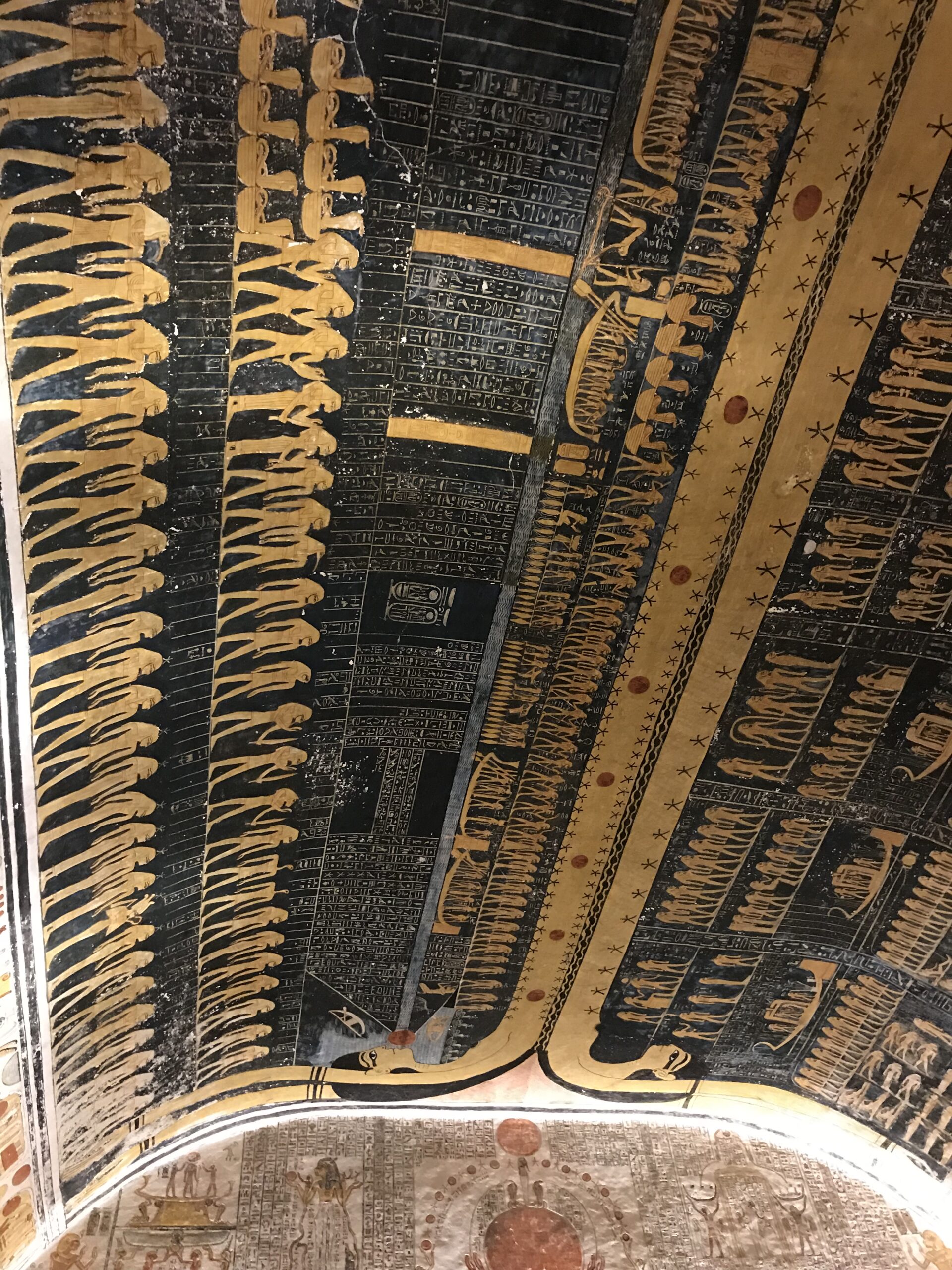 Unfortunately, I didn’t identify which tomb my pictures came from, so a selection of the tomb interiors follows. A few I have matched with printed pictures, so that will give some idea. The first eight are from the Tomb of Ramses IV.