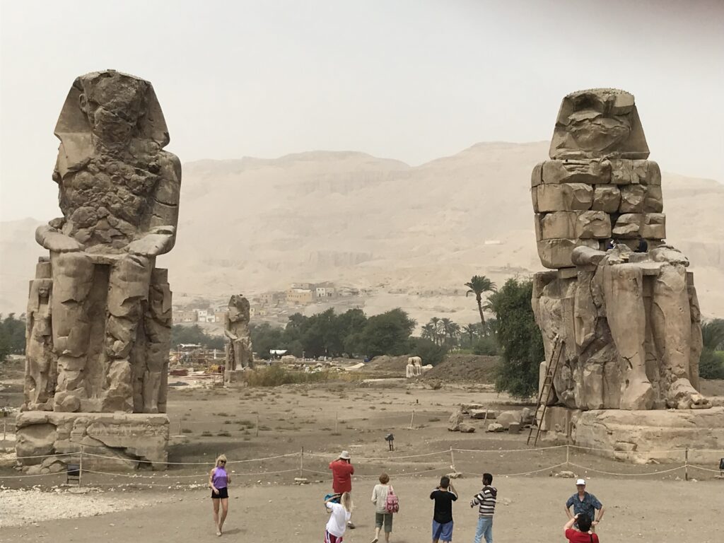 The Valley of the Queens is also known as Ta-Set-Neferu or the place of beauty. Here we saw the tombs of Queen Titi and her son, Amun-Her-Khebesh.  Then we went on to see the Temple of Hatshepsut.  On our way back to the ship, we stopped at the Colossi of Memnon, two 64-foot high statues that depict Amenhotep  III.  They once guarded the gates of a mortuary temple, Al-Deir Al-Bahari Temple.