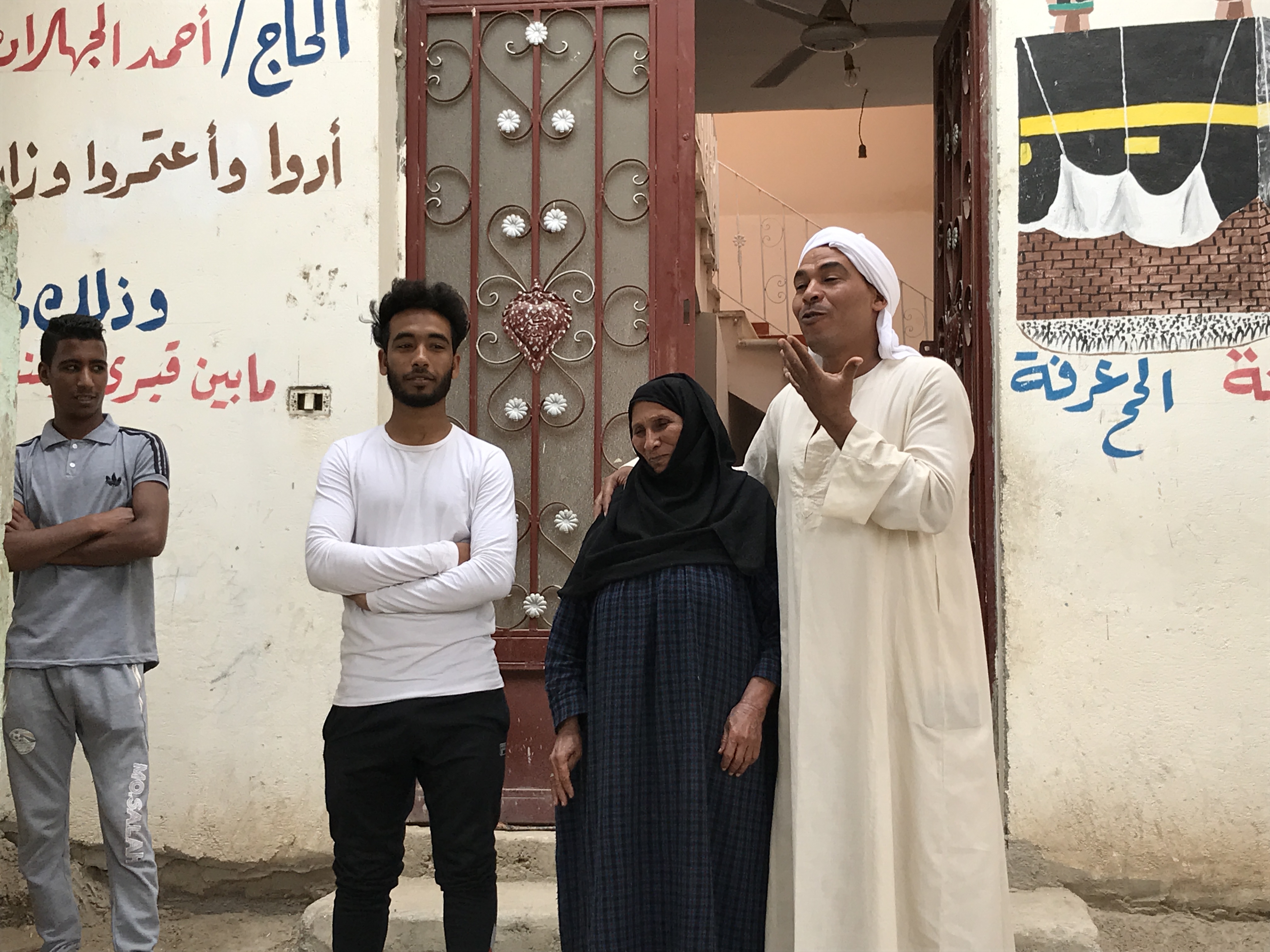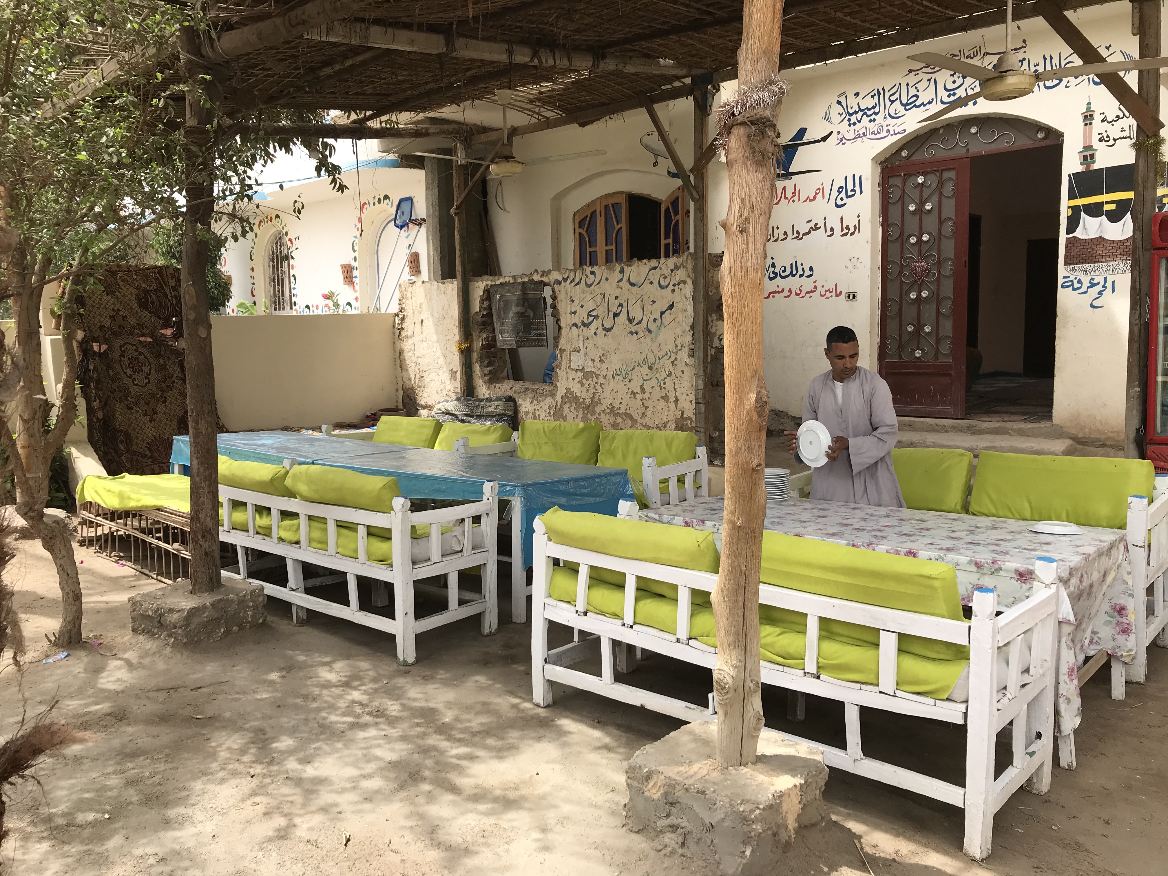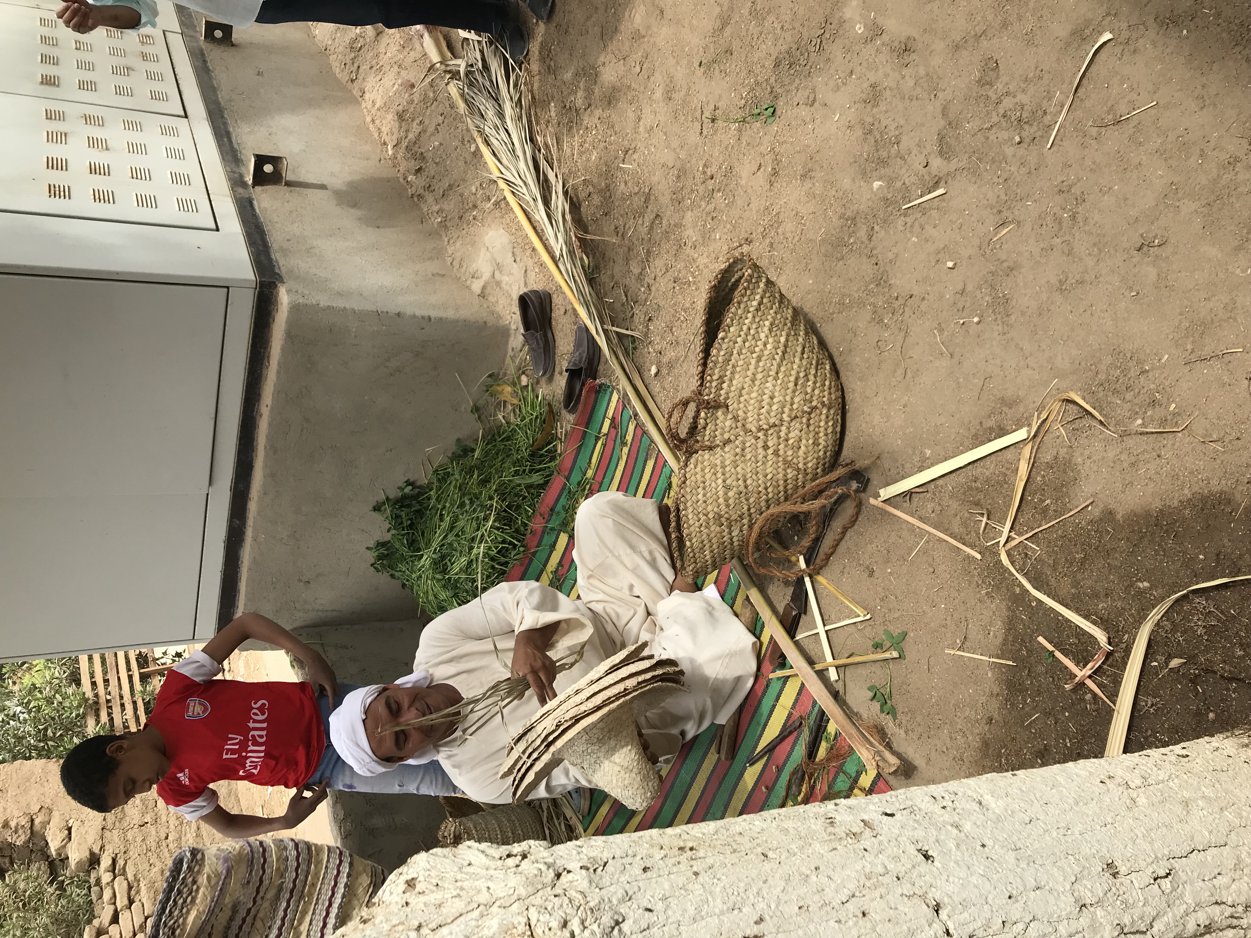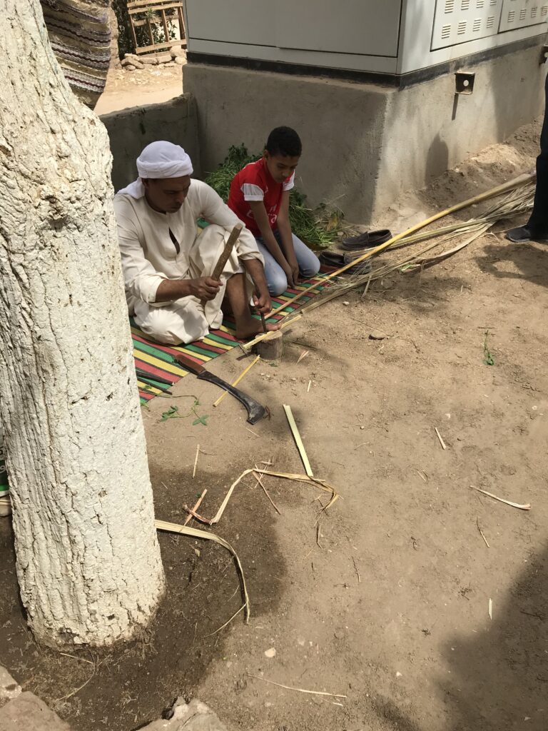 After a full morning, we had a farm-hosted lunch with a family who had a small “farm” along the Nile.  They served a traditional meal for us and showed us their animals and oven for baking bread.  The father also is a weaver and he showed us how he wove his hats and baskets.  Four generations of the family were present