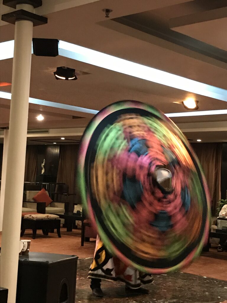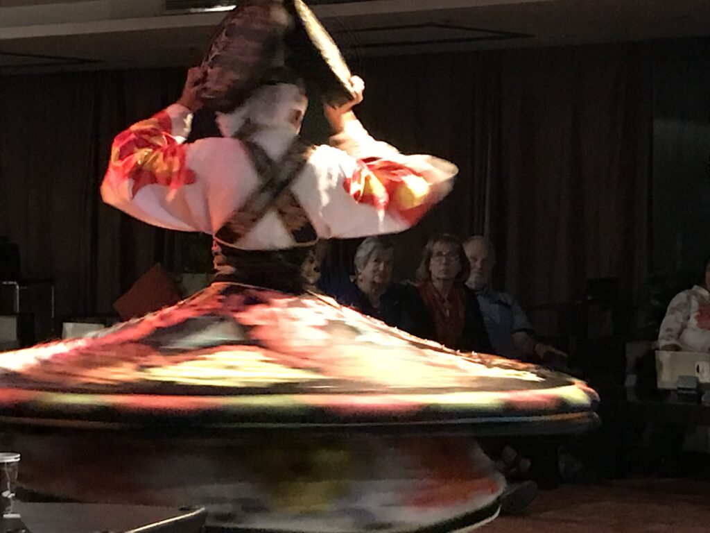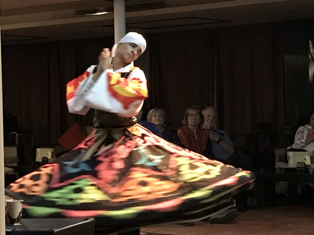 One of my hopes was to see a whirling dervish. After dinner the ship’s crew provided us with a group that came to show us. The whirling dervishes are more than entertainers. They are custodians of Sufi spirituality and perform a sacred ritual. Sufism delves deep into the spiritual dimensions of Islam, seeking to attain closeness to the divine through meditation, introspection, and devotion. In Egypt, Sufism has played a pivotal role in shaping the country’s spiritual landscape and fostering a connection with the divine that transcends religious boundaries. The act of spinning is a metaphor for the cosmic dance of creation, symbolizing the soul’s journey towards unity with the divine. The repetitive motion reflects the cyclical nature of existence and the eternal nature of the divine. It was mesmerizing to watch them.