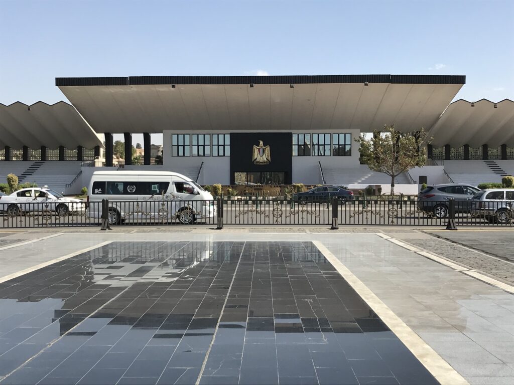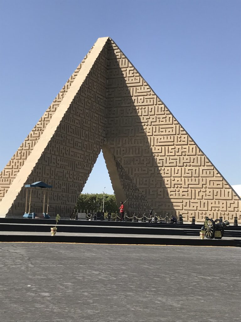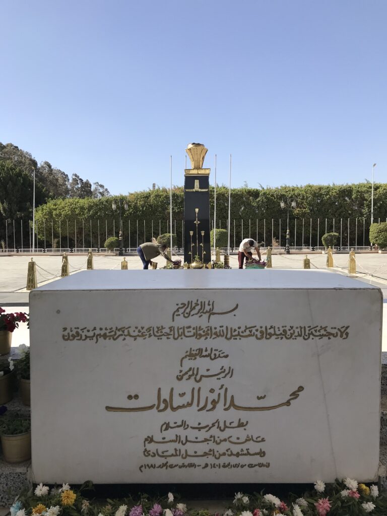 Our first stop was the tomb of President Anwar Sadat and the Memorial tomb of the Unknown Soldier. This is an important symbol commemorating the victims of the October War and President Sadat, who, many believe, saved Egypt. Tarek explained about many things Sadat accomplished. The memorial was established in 1975 in the shape of a hollow pyramid. The pillars are inscribed with 71 symbolic Egyptian names.