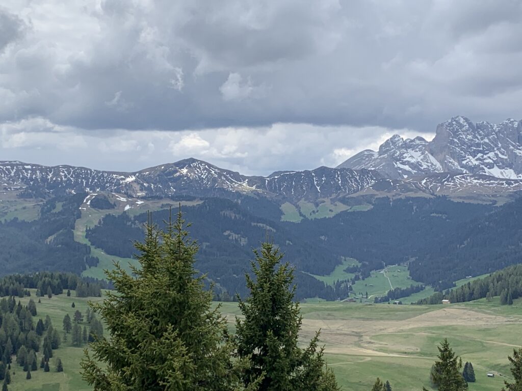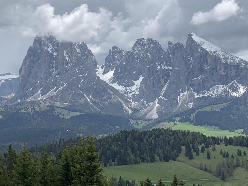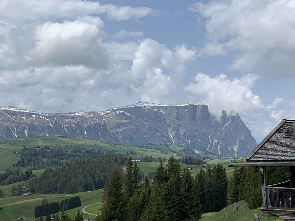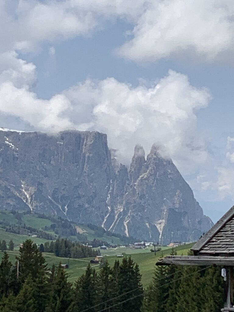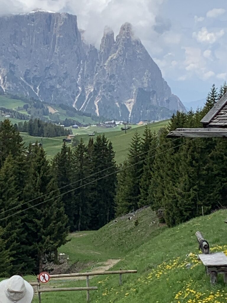 In a few minutes, from the center of Ortisei a cable car will take you to the Alpe di Siusi mountain plateau, the sunniest part of the Dolomites. The Alpe di Siusi is the largest high alpine pasture at an altitude of 6,560 ft. and one of the most famous ski and excursion areas of Europe. Here you will find breath-taking mountain scenery consisting of the Gruppo del Sella, Gruppo del Sassolungo, Catinaccio, and the Sciliar surrounding the Alpe di Siusi. Here we had lunch and explored this beautiful plateau.